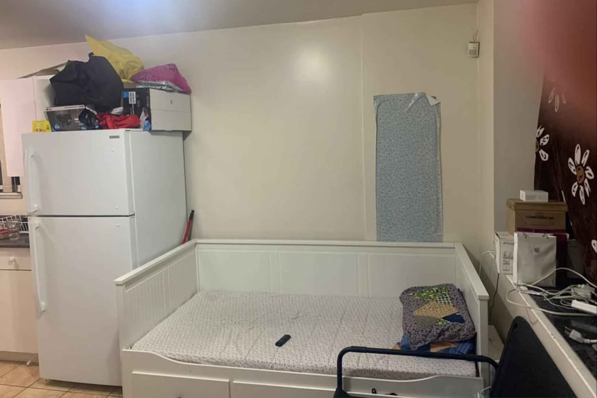 Lastly, in Surrey, a listing for a bedroom rental adjacent to a refrigerator is particularly eye-catching. Marketed as an “open basement,” the price is $650, with Wi-Fi available at an additional cost of $35.