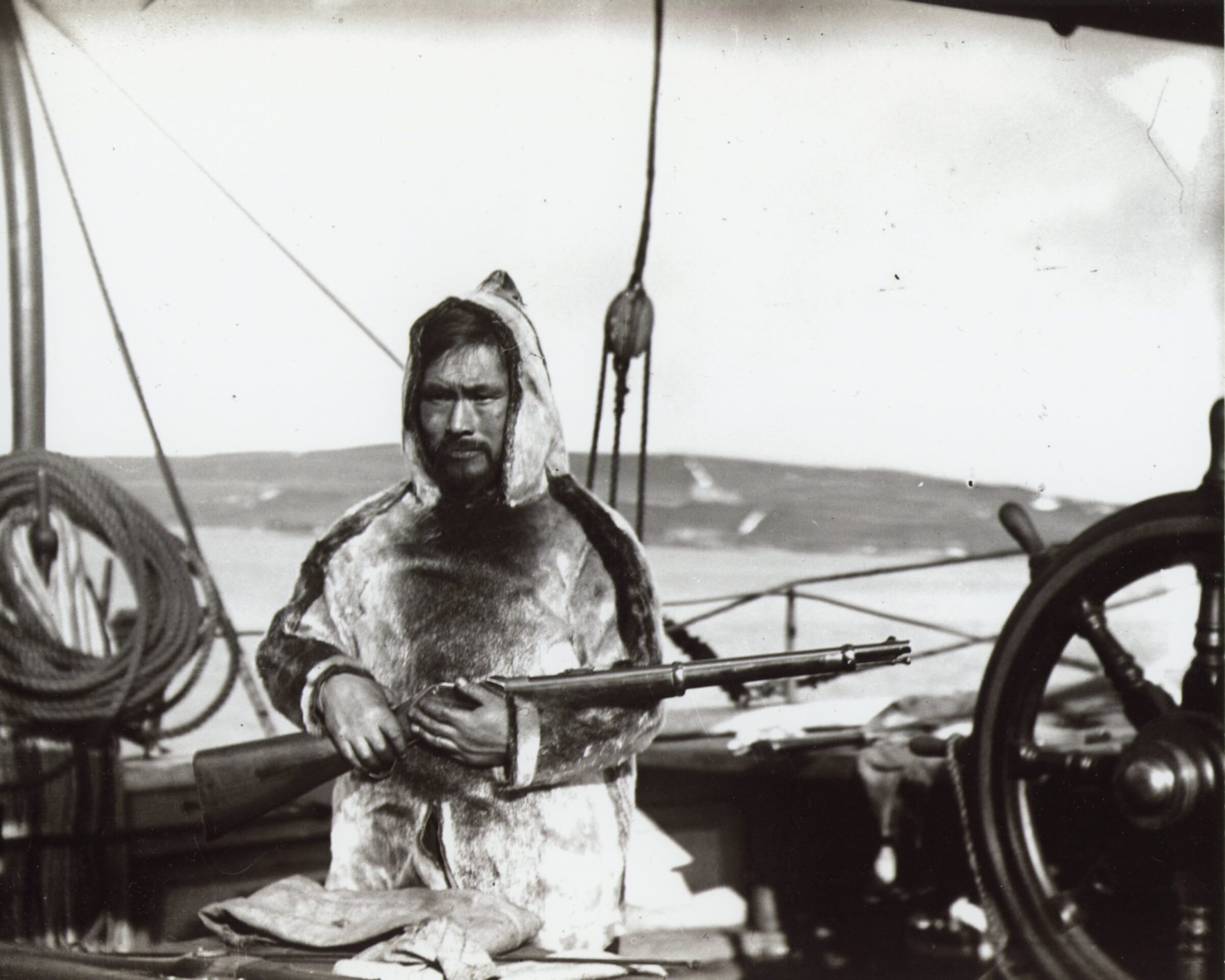 The Maud was unable to reach Durban Harbour due to land-fast ice, prompting Etwango and some crew members to travel approximately 15 miles over the ice to signal the Inuit community. Upon their arrival, several of his fellow Inuit greeted him, but Etwango took a moment to rest before reuniting with his family. His reunion with his wife was notably subdued, but he was visibly joyful to see his daughter. His wife, while initially reserved upon seeing Etwango, expressed her excitement when she discovered the gifts from Dundee, including a melodeon—a type of button accordion.