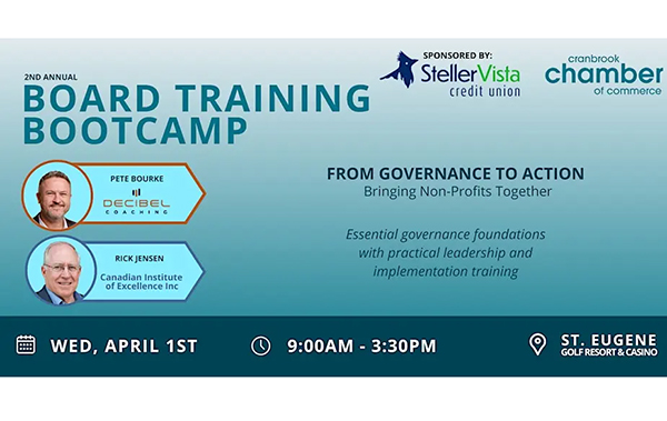 The Cranbrook Chamber of Commerce is set to host a Board Training Bootcamp specifically designed for non-profit organizations on April 1, 2024. This full-day training event...
