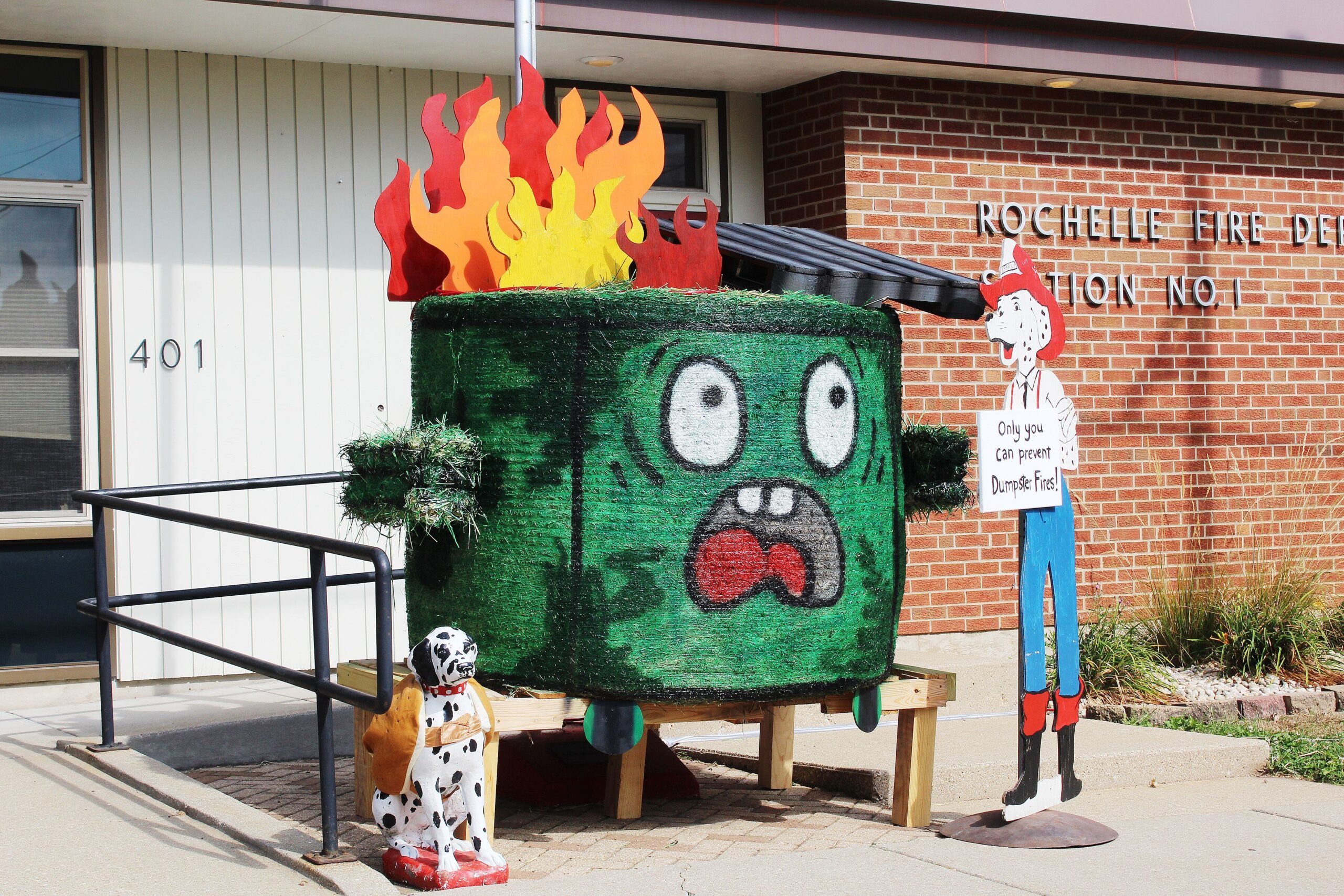 This year’s creations include a variety of themes, from animals and Halloween scenes to support for the Rochelle High School Hubs sports teams. The trail runs mostly through Rochelle, with some displays located just outside the city limits. Each participating group is responsible for sourcing their own art supplies, ensuring that creativity knows no bounds.